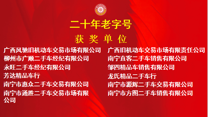广西二手车行业协会党支部书记林彬彬(左一)为获得“二十年老字号”的企业颁奖